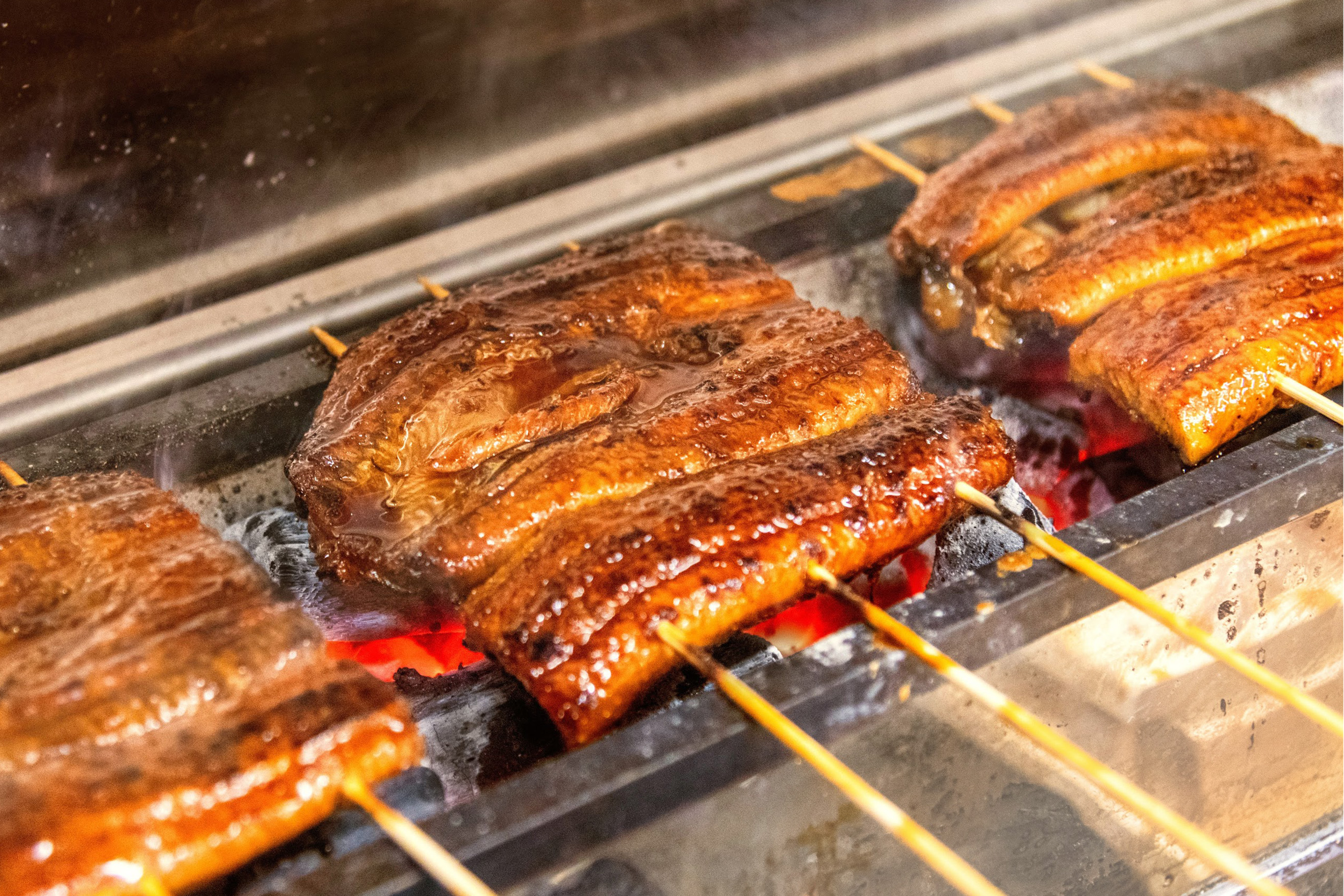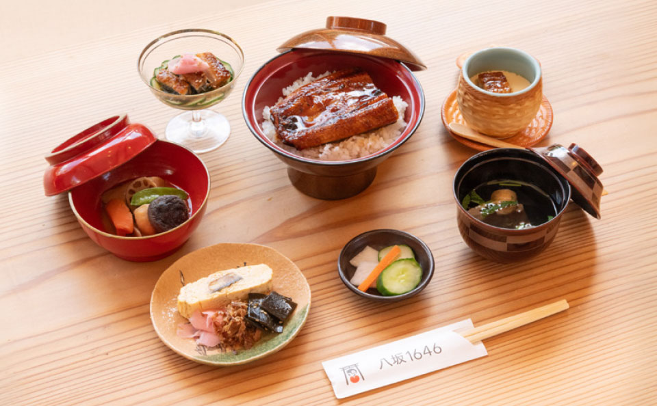 At Yasaka 1646, we serve thick eel from Miyazaki Prefecture, carefully grilled over charcoal with a special sauce that includes apple molasses.