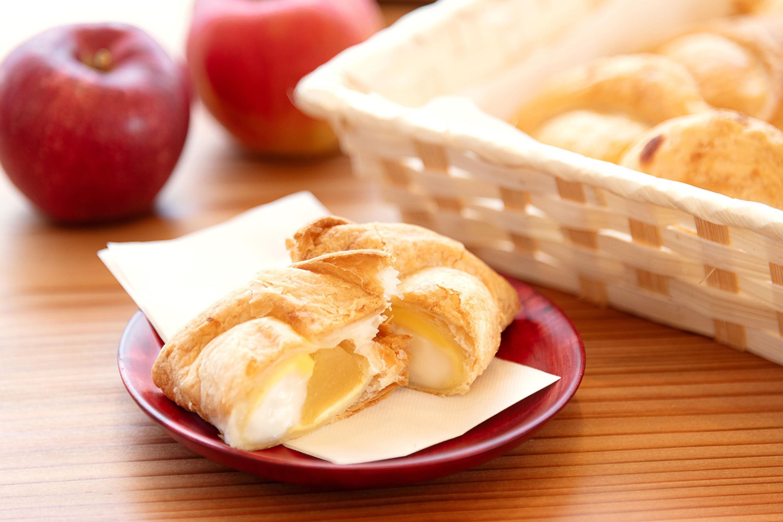 Please enjoy the sweet taste of large apples with the crispy texture of the dough.