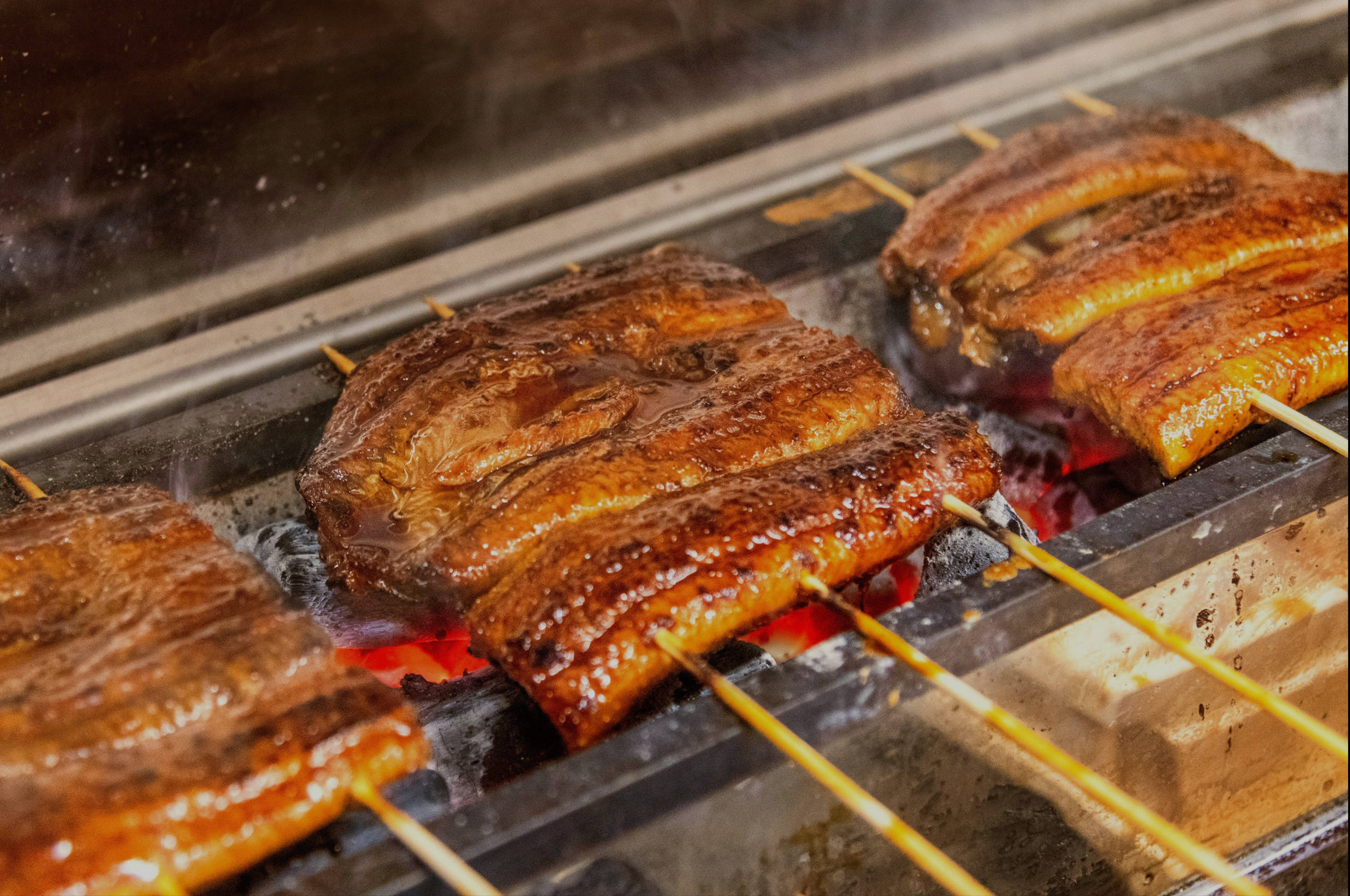 At Yasaka 1646, we serve thick eel from Miyazaki Prefecture, carefully grilled over charcoal with a special sauce that includes apple molasses.
